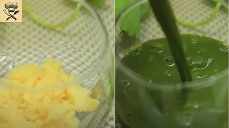 - Cho rau má, đậu xanh đã nấu chín, nước cốt dừa và mật ong hoặc đường vào máy xay sinh tố.